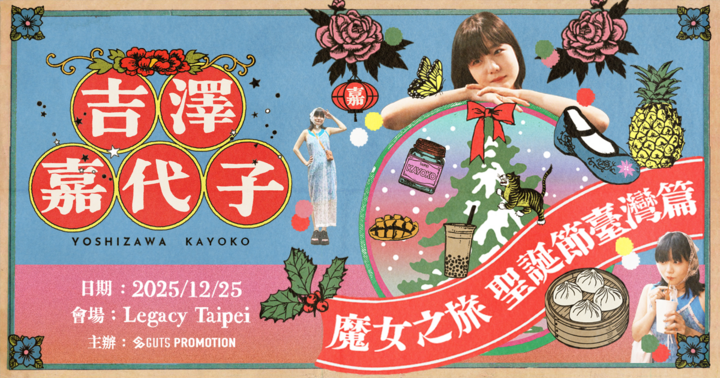 2025/12/25 19:00(+0800)妄想系個性創作才女-吉澤嘉代子 出道十年首度臺灣公演 邀你共度魔幻聖誕 🎄吉岡里帆(演員)、松本隆(作詞家)、山口一郎(sakanaction 魚韻)、清水依與吏(back number)、蔦谷好位置(音樂製作人)等各界名人一致讚賞! 🎄動畫《黃昏旅店》主題曲〈黃昏〉 🎄電影《冰淇立即購票
